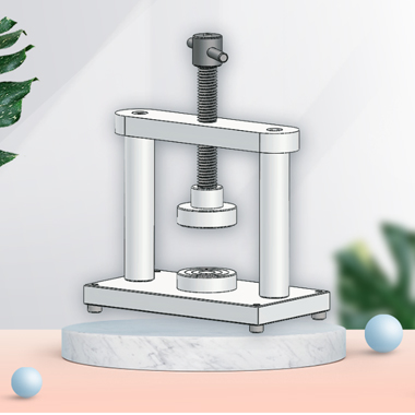 简介及用途:通过普通三角螺纹传递一定的下压力,完成小型零件的过盈装配过程。关键部位尺寸公差为正负0.1mm,孔距正负0.3mm,其他尺寸公差正负0.2mm。可用于钳工中划线、锉削、锯削、钻孔、锪孔、攻丝、套丝等课程的教学。